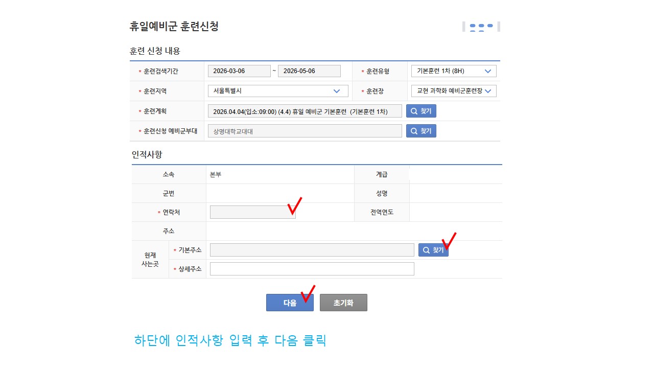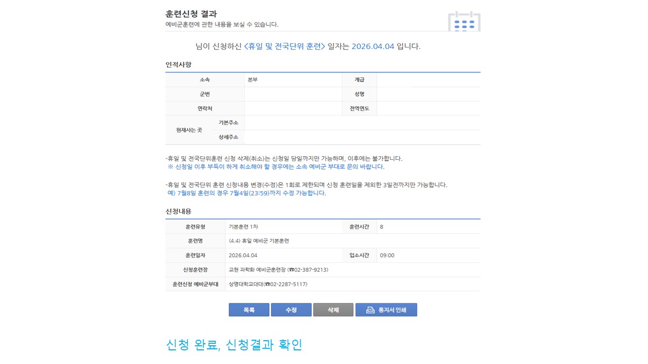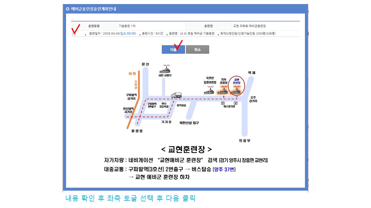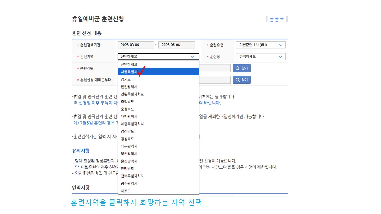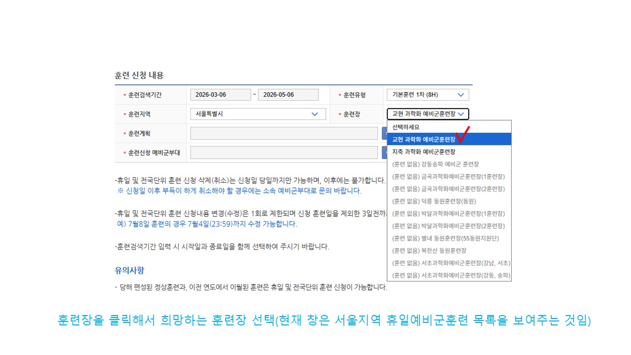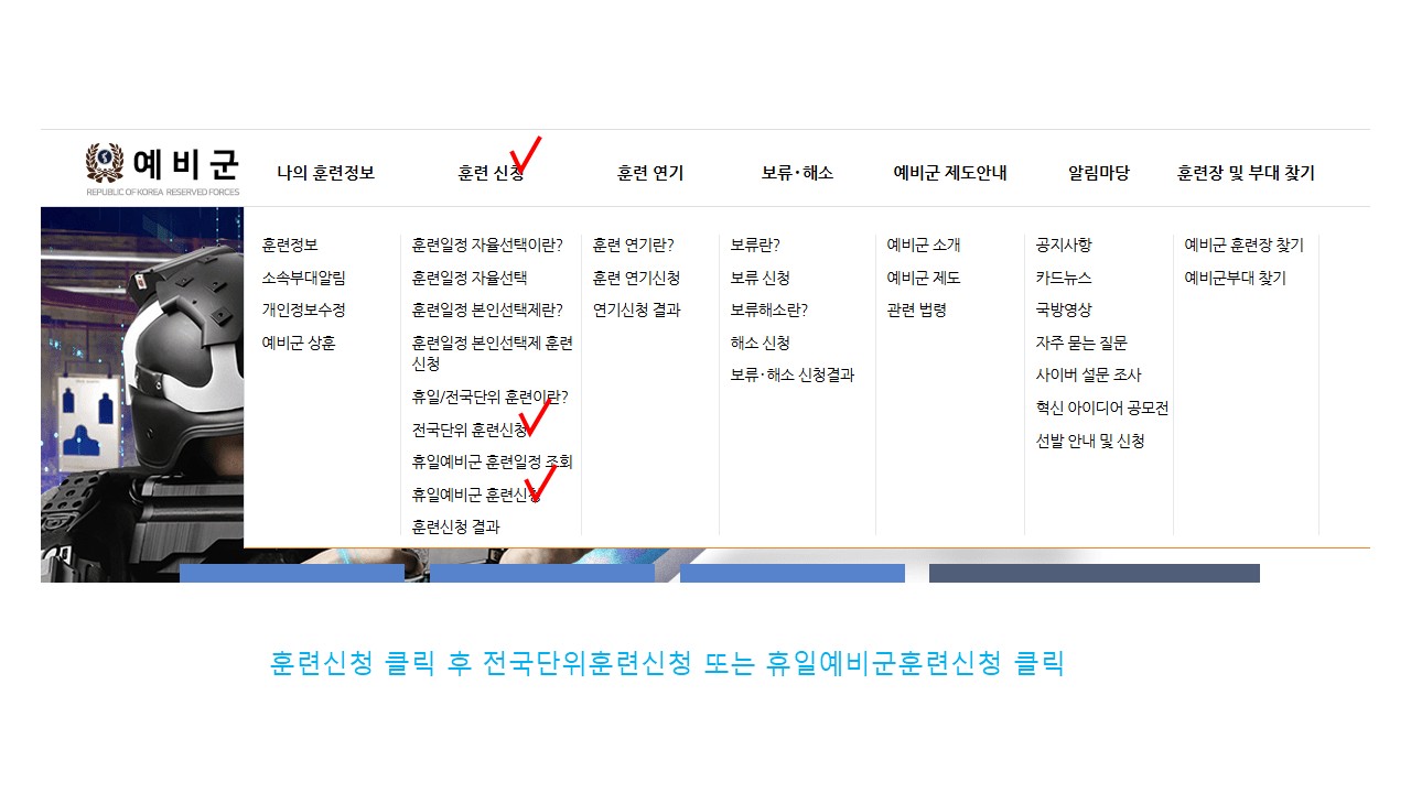 | 서울 [일반] | [예비군대대] 전국단위/휴일예비군 훈련 신청 방법 안내 |